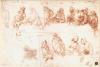 These sketches of da Vinci's lay out early ideas for Last Supper. He experiments with poses and expressions for some of the disciples.