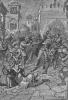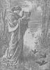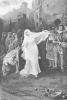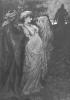 Numerous artists envisioned the poem "The Spanish Gypsy" through different scenes. The first four exhibited here include "Fedalma" by George Fuller (1822-1884), who was not only an illustrator, but also a portrait painter; "The Troubador" by William L. Sheppard (1833-1912); "Fedalma, The Spanish Gypsy" by W. St. John Harper; and "Deep Mountain Gorge" by Fred B. Schell (1838-1905). The next four scenes depicted are the "Death of Zarca" by W.L. Sheppard, "Fedalma Dances in the Street" by W.L. Taylor, and two more illustrations by W. St. John Harper, "My Father Comes" and "'Tis a Sword." And finally, an Edmund H. Garrett illustration depicts the departure of the boat in "The Embarkment."