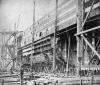 The SS Great Eastern was the first double hulled ship ever built. This image is during its construction, which gives a view of both the inner and outer hull at the same time. It was also the largest ship ever built at the time, and would remain so until 1899. It was originally designed to take passengers from London to Sydney and back without refueling; however, it only ever made transatlantic voyages. At one point, the ship hit a rock while trying to find a place to dock, tearing a 9ft wide 83ft long hole in its outer hull. The inner hull remained intact. If not for the double hull design, the ship would have likely been lost. Although a double hull would not appear on another ship for decades, it is now mandatory in passenger ships for safety.