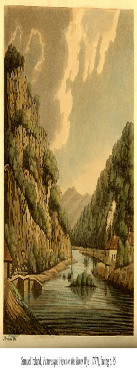 Above: Picture of Tintern Abbey; Symonds Yat, "a few miles above" Tintern Abbey where Wordsworth's poem is likely set; a painting of the Symonds Yat area
