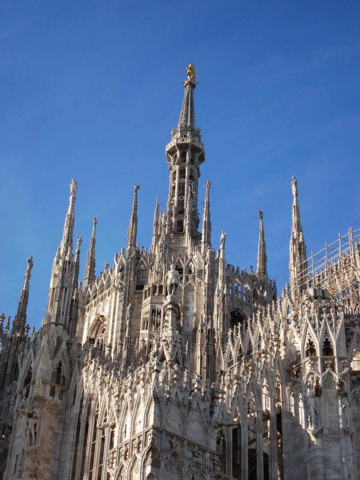 The tiburio is a structure located on the Milan Cathedral in Milan, Italy. It is most notable for being the first construction project Leonardo da Vinci took part in. While the style of the tower is Gothic, the methods used in its design are Renaissance. The challenge was to create one that would stand over the cathedral's crossing area. da Vinci proposed a design that was in the shape of a square, stating that it would be much stronger than that of an octagon. He drew a system of buttresses that would hold the tower and strengthen the building's infrastructure. His design would be change into a more octagonal layout, but his experience would lead him to continue creating drawings for potential buildings.