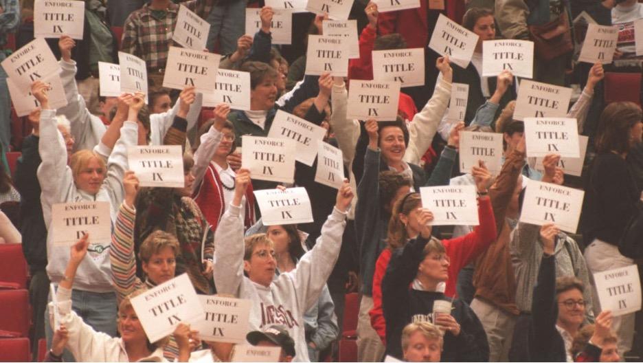 One image demonstrates the fight for Title IX and what it stands for. In the 1970’s women were fighting to become equal compared to men and have the same opportunities. In the other image, it shows the outcome of Title IX and how classrooms were now filled with women. Since 1972 when Title IX was passed, women have made great achievements academically and athletically. To this day, 38.3 % of women have a bachelor’s degree or higher which is higher than the 36.7% of men that have a bachelor’s degree or higher. There has been a major increase in women pursuing higher education and pursuing STEM degrees. Now women make up a large majority of the job force and within athletics. Before Title IX existed few opportunities for women were available. The National Collegiate Athletic Association (NCAA) offered nothing for woman regarding scholarships and competing in championship games. Title IX brought a cause to these problems and established a level playing field. If something was offered to men, it had to be offered to women too. Title IX has given women equal opportunities in education, sports, and government funding. The passing of the law not only changed society for women, but for everyone that was discriminated against. Title IX has altered the minds of individuals in America and created a greater change of equality.