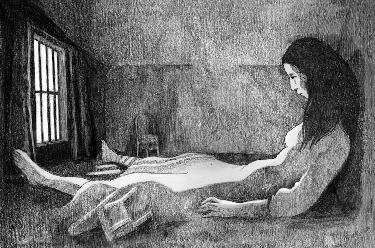 This image is from the fourth issue of the collaborative comic project Rundgång. 11, where artists and illustrators each interpreted a piece of Charlotte Perkins Gilman’s feminist classic The Yellow Wallpaper., the following piece is from an artist named Minna Floss. This picture depicts the unamed woman trapped within the confines of the vacation home, only to out grow out of the enclosed prison.