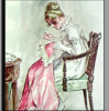 C.E. Brock, "Fanny Sewing," for Mansfield Park (1814) by Jane Austen, published by J. M. Dent & Co., London 1908. This illustration by C. E. Brock portrays the character of Fanny Price sewing while sitting down in a chair. The illustration perfectly captures Fanny's delicate nature as a character, and it has the essence of my decisions behind creating my silhouette. Fanny's signature hairstyle is also displayed in the illustration, which is evident in the silhouette on the wooden oval frame. Fanny's true nature inside, when understood, can be seen through the picture as well, as Fanny is actually intelligent and aware of her surroundings, yet she gets weighed down by her external nature. Many calm and sweet words are used throughout the novel to describe Fanny, which are apparent through the way others see her, captured in this illustration of her sewing and seeming as if she is just a quiet mouse, while her true nature and skillset are incubated within deep thought.