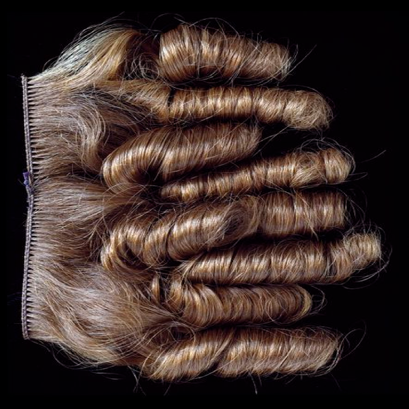 Victorian Era Curl Frontpiece: This is an example of a Victorian era hairpiece. Women would use a frontpiece to add an extra extravagence to their updo, especiallly if the woman in question did not have a natural curl in her hair. It resembles the one Aunt Branwell is described as wearing in Reef's biography. Aunt Branwell would have used this to emulate a pattern such as the one Anne was born with. It emulates a smooth natural curl pattern, which was highly prized as the beauty standard in Victorian era in England.