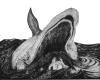 Rudyard Kipling, "The Whale Looking for the little 'Stute Fish," 1926, from his Just So Stories, The Victorian Web, scanned by George P. Landow. This sixth plate depicts the frighted little ‘stute fish hiding from the angry whale he deceives in an attempt to save his life. Being the last fish in the ocean, the ‘stute fish named Pingle is responsible for the whale eating a man instead. The man outsmarts the whale and now the whale is hunting for the devious small fish hidden beneath the door-sills of the equator. Fortunately, the whale’s temper abates, and he and the little fish become good friends. Kipling’s brilliant imagination and flair for whimsy add greater depth to his illustration with the inclusion of two giants, Moar and Koar, who protect the equator. The doors (which must always be kept shut) thrill curious minds with wonder and marvel and beg the question: What if they were opened?