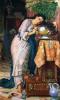 Hunt's painting illustrates a scene from John Keats' poem 'Isabella, or the Pot of Basil'. Isabella caresses the pot, in which the severed head of her lover is planted. The skulls decorating the pot allude to what is inside.