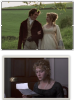 Screenshot of Marianne and Willoughby's Walk Contrasted with Marianne Reading Willoughby's Letter in Sense and Sensibility (1995) directed by Ang Lee. These are contrasting screenshots from Ang Lee's 1995 adaptation of Sense and Sensibility. The top image depicts Marianne and Willoughby strolling together. The pair appear happy in each other's company. Marianne even seems giddy with delight. The pair touch physically in the image and look at one another flirtatiously. The bottom image shows Marianne reading Willoughby's letter. The scene is emotional, and Kate Winslet captures Marianne's despair well. The dark lighting and the shadows that fall over Marianne's face in this scene contrast with the visuals of the other image. This second screenshot illustrates the graveness of Marianne's situation given the letter she receives from Willoughby. Her highly idealized romantic prospect has left her and in a disrespectful, callous way. No longer is she the beaming woman from the top image. Willoughby leaves Marianne in a state of heartbreak, showing him to be a careless man.