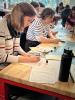 Composing Henry Tilney's Letter to Catherine Morland, created by Emma Young, 2023. The letter was handwritten on tea-stained paper with a glass dip pen, folded , and sealed with wax with the symbol of two hearts, befitting a love letter. While glass dip pens are a modern invention, the process of writing with a dip pen and folding the paper into a letter are historically accurate.