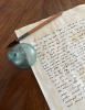 Composing Frederick Wentworth's Letter with Nineteenth-Century Pen and Inkwell, from the Collection of Catherine J. Golden, 2023. This image pairs a Regency style pen and inkwell with a letter written on antique-style paper. I created the paper by using a British brand of black tea, PG tips, to stain white printer paper to look authentic to the Regency era. The dip pen allowed me more control over my writing than a quill, which Wentworth likely would have used to write his letter. The inkwell is a plain one, but it has meaning to me--I found it while gardening in the backyard of my Victorian home, built in 1869. Penning the letter, I became very aware of its length--my hand began to cramp--and of Wentworth's fluency with long and short sentences to great effect. The character has an impressive syntactic repertoire and speaks with passion.
