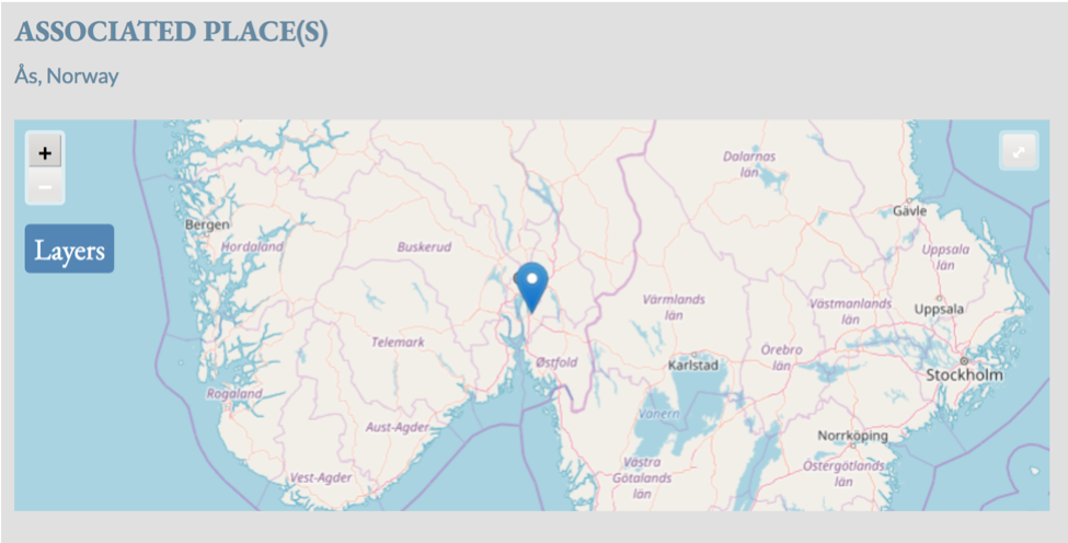 Since the COVE timeline-builder is interlinked with COVE’s map-builder tool (an adaptation of OpenLayers), she was also able to link the timeline to a precise geolocation for the bridge: over European route E18 in Ås, Norway (Fig. 5).