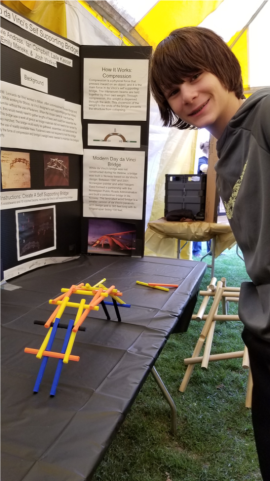 The following weekend, students exhibited their designs to elementary- and middle-school kids coming to Purdue’s annual Spring Fest. Kids visiting the Honors College tent could build a small version of the bridge design created with a 3D printer (pictured in Fig. 7) or the larger version, which you can see on the ground.