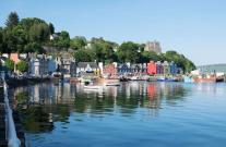 Tobermory is the capital of the Isle of Mull in the Scottish Inner Hebrides. It is located on the east coast of Mishnish, the most northerly part of the island, near the northern entrance of the Sound of Mull.